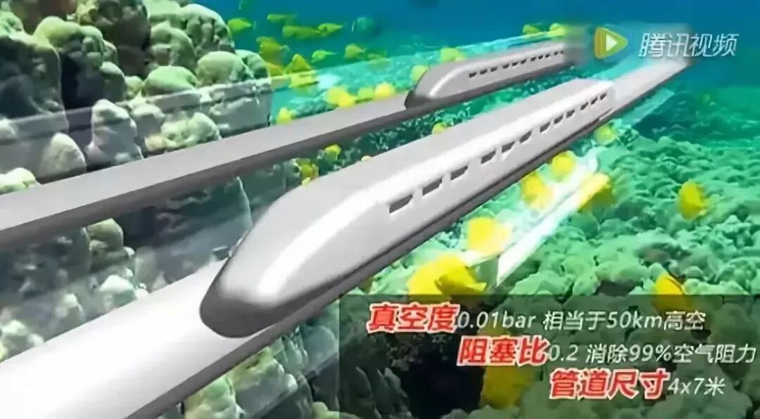 下面来看一段这个真空超级高铁视频: 海底真空隧道的优点: 高速快捷:速度超过1000公里/小时 在水下30-50米中建一个密闭的管道,把里面抽成真空。然后把人或物装载在一个胶囊里面,再把胶囊放到管道中运行。由于采用真空磁悬浮技术,无机械摩擦阻力,速度可超过1000KM/时!